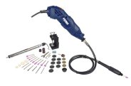CTM1017 - Přímá bruska 160W je malá bruska s řadou nástavců, určená k jemným gravírovacím pracím, preciznímu opracování dřeva, kovu či plastů a práci ve stísněných prostorech. Má ergonomický tvar a je pokrytá gumou v místech úchopu, což snižuje únavu při práci. Stroj umožňuje výměnu a montáž upínacích kleštin pro uchycení nástrojů s průměrem stopky 3 nebo 3,2 mm. Součástí balení je sada 40 kusů brusných a řezacích nástrojů a nástavců. Pro velmi jemnou a drobnou práci je u brusky ohebný nástavec.