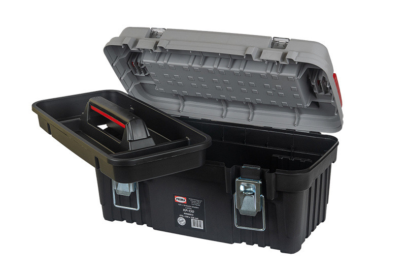 Plastový kufr na nářadí s hliníkovým držadlem a možností uzamčení