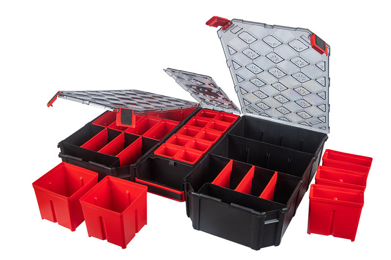 Organizér má 32 míst a z toho je 22 vyjímatelných a dále má 6 (červené) vyjímatelných přepážek.