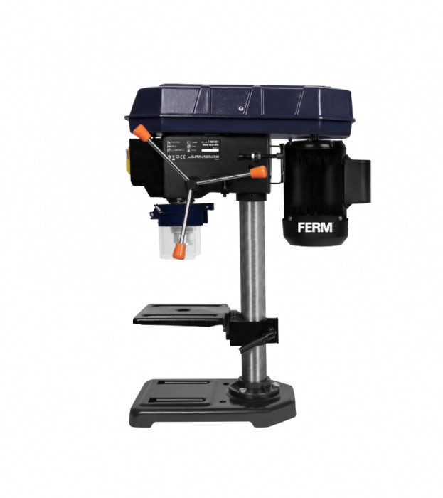 Cenově výhodná stolní vrtačka FERM s pohonem klínovými řemeny na 230 V, která je ideální pro kutily a výukové dílny.