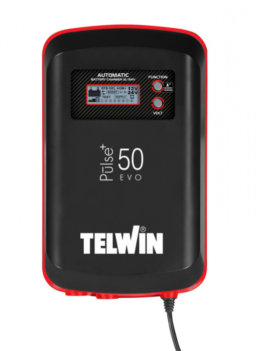 PULSE 50 EVO je multifunkční elektronická nabíječka, udržovací a tester baterií pro mokré, gelové, AGM, MF, PbCa, EFB, Li 12/24V baterie s LCD displejem. Automatické nabíjení a údržba v Pulse Tronic na základě technologie vybrané baterie. Pokročilé funkce: BOOST pro rychlé nabíjení; COLD pro nabíjení a udržování baterií při nízkých teplotách; TEST alternátoru, startování a stav nabití baterie; RECOVERY pro regeneraci sulfátovaných baterií; SUPPLY pro nepřetržité a spolehlivé napájení během výměny baterie. Speciální baterie pro práci v náklonu.