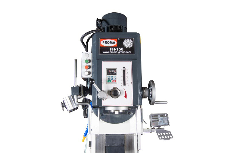 Konvenční ložová univerzální frézka PROMA FH-150N má masivní a těžkou konstrukcí z litiny, která je optimální pro obrábění těžkých a velkých obrobků. Pro zvýšení komfortu prováděných prací je frézka vybavena digitálním odměřováním a frekvenčním měničem pro jednoduchou a plynulou změnu otáček vřetene.