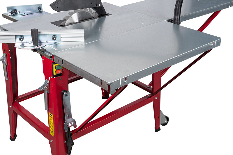 RPKS-315/230 SET se skládá z kotoučové pily na dřevo Roxta RPKS-315/230 + pojízdný stolek + boční stůl s podpěrami.