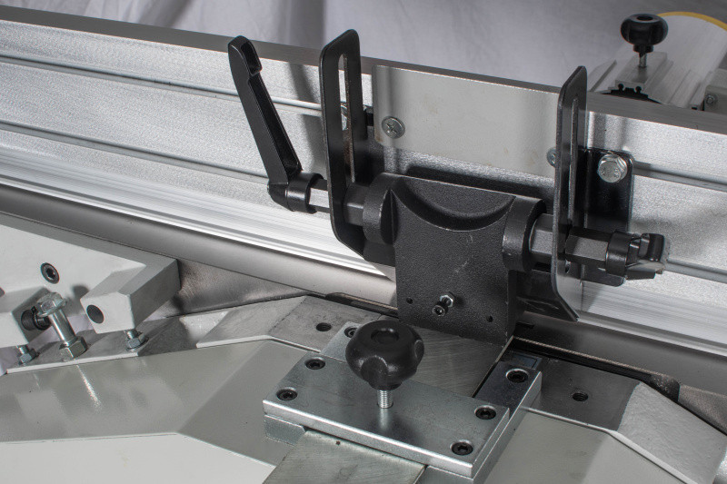 - Stabilní boční vodicí pravítko s hranolovým vedením, lze nastavit od 90° do 45°