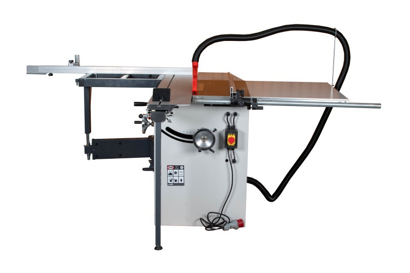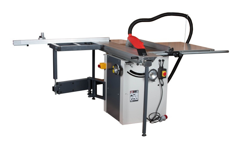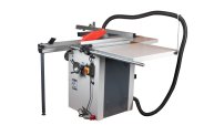Formátovací kotoučová pila PROMA PKS-315PS je vybavena pojezdovým stolem o délce 1600 mm . Sériové vybavení motorem 3,0 kW a jedním pilovým kotoučem průměru 315 mm s výškou řezu až 105 mm určuje tento model pro profesionálního uživatele na přesnost, snadnost použití, rychlou změnu nastavení a všestrannost práci. Tento model vyniká zpracováním, snadným pojezdem formátovacího stolku a podélným vodicím pravítkem uloženým na kruhových vodicích lištách s jemným nastavením. Výkonný hnací motor zaručuje optimální výkon při řezání i při delším provozu. Stabilní a snadno nastavitelný pilový agregát naklápěcí v úhlu do 45°. Pila je sériově dodávaná s posuvným hliníkovým formátovacím stolem s velikostí 1600 x 238 mm. Sériově je pila vybavená rozšiřovacím a prodlužovacím stolem pro zpracování velkoformátových desek. K přípojce pro odsávání lze připojit hadice o průměru 100 mm a zajistit tak optimální pracovní podmínky. Naklápění pilového kotouče až do 45° podle stupnice je pomocí ručního kola. Masivní stůl pily z šedé litiny, který je přesně opracovaný a broušený do roviny je vybaven T-drážkami umožňuje řezání s úhlovým dorazem. Kombinovaná konstrukce stroje z oceli a litiny je odolná proti zkroucení.