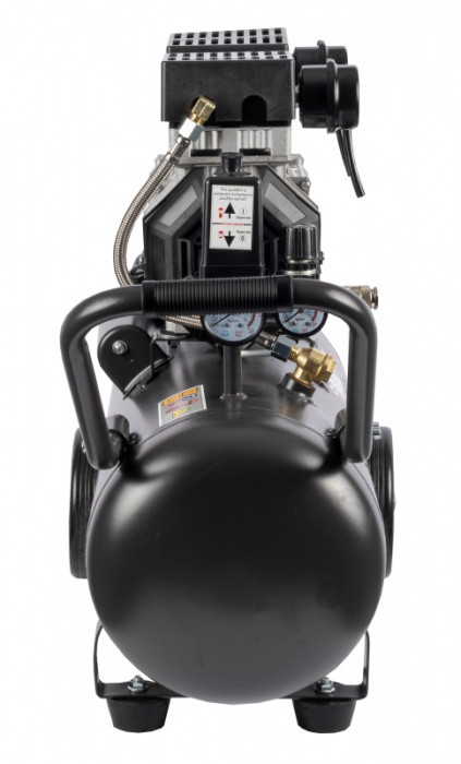 - Velký vzdušník o objemu 24 l slouží jako zásobárna stlačeného vzduchu a motor se tak automaticky zapíná jen v případě, že tlak vzduchu klesne pod požadovanou úroveň