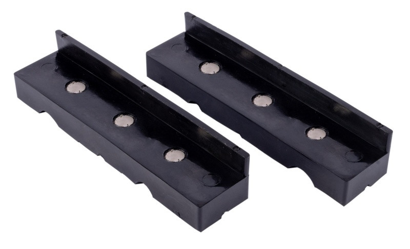 Vroubkované TPU plastové čelisti jsou zárukou spolehlivé ochrany vašeho výrobku před poškozením. S dvěma magnety pro pevné uchycení čelistí na svěráku nabízí tento produkt bezpečné a efektivní řešení pro manipulaci s kruhovými a nepravidelnými součástmi.