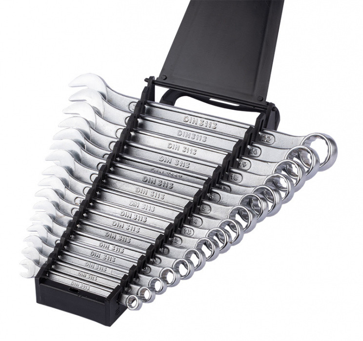 Povrchová úprava: Chromovaný broušený povrch ploché části. 12ti hranné očko vykloněné o 15°od osy klíče (pracovní úhel 30°).