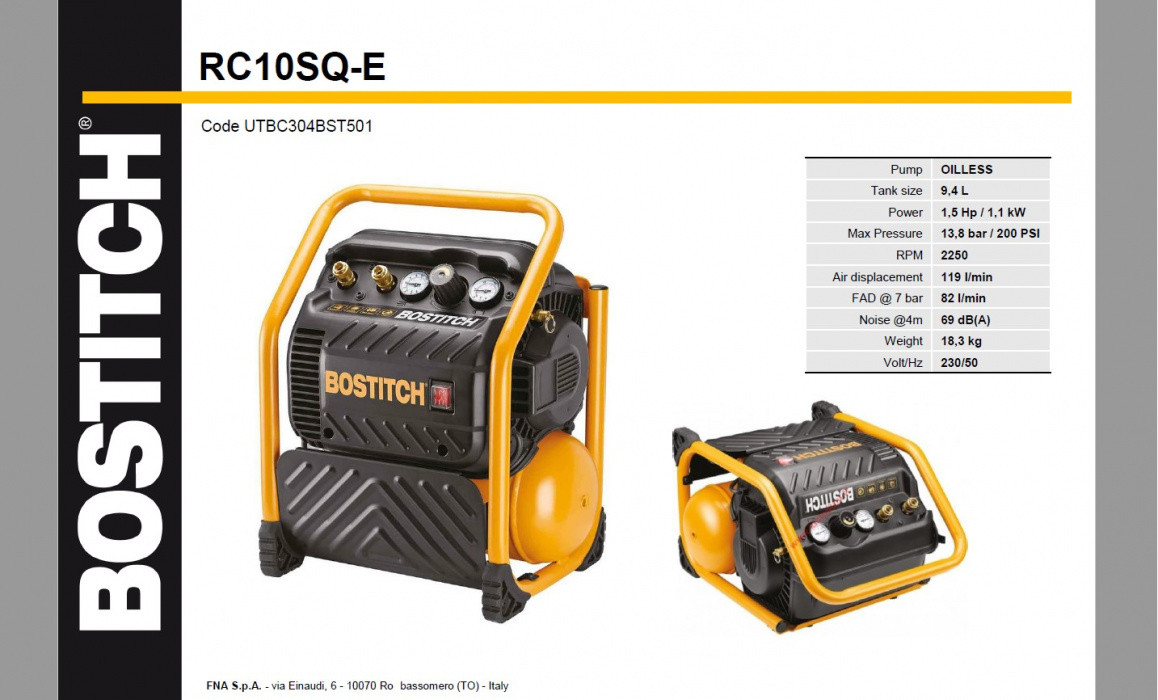 Bostitch RC10SSQ-E je vysoce výkonný a tichý kompresor určený pro různé profesionální i domácí použití. Díky své tiché technologii je ideální pro použití v prostředích, kde je nízká hlučnost klíčová.