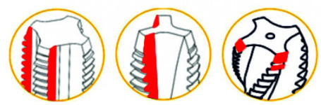Vzhledem k nastavitelnému úhlu od 0° do 30° je tento model univerzálně použitelné pro závitníky o 3 a 4 břitech.