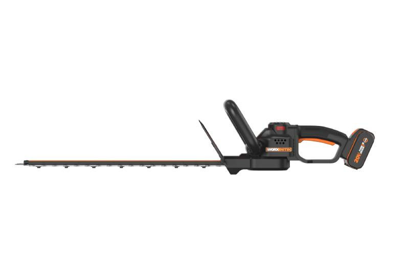 WG263E - Aku plotostřih 20V NITRO 56cm 1x4Ah - Powershare je vybaveny vysoce účinným bezkomutátorovým motorem, který poskytuje o 30 % vyšší rychlost řezání. Dvojité řezací čepele s maximálním řezným průměrem 27 mm mezi každou čepelí rozříznou každý list a větvičku dvakrát. Při rychlosti 3400 ot./min. zanechávají čistý, ostrý a rovný řez.