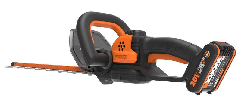 WG264E - Aku plotostřih 20V, 56cm, 1*2Ah - Powershare jsou super lehké a ergonomické a jsou vybaveny dvěma laserem řezanými dvojčinnými noži (56 cm), které dokážou stříhat větve až do tloušťky 20 mm. Dvojčinný kotouč snižuje vibrace a zvyšuje řezný výkon ve srovnání s jednočinnými kotouči. Oboustranná bezpečnostní rukojeť zabraňuje náhodnému spuštění a umožňuje použití nůžek na živý plot v různých polohách pro jakoukoli výšku živého plotu.