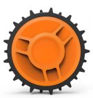 - Snadná výměna koleček (Chcete-li výměnu provést, jednoduše povolte staré kryty a šrouby na starých kolech a odstraňte je. Poté můžete nasadit nová kola, utáhnout šrouby a připevnit kryty terénních kol. Můžete použít dodávané oranžové kryty nebo originální černý kryt).