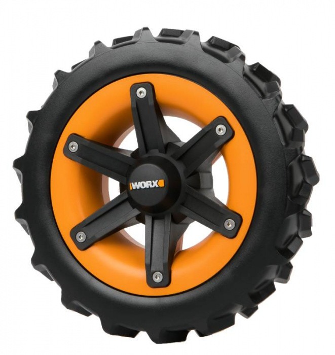 Worx WA0953 terénní kolečka jsou alternativní kolečka pro robotické sekačky Worx Landroid modely S a M. Zlepšují přilnavost na trávníku a jsou vhodná na všechny povrchy.