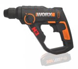 WX390.9 - Aku vrtací kladivo Mechanismus tohot pneumatického vrtacího kladiva poskytuje působivou energii příklepu 1,2 J pro rychlé vrtání do vyztuženého betonu. Worx H3 o velikosti standardní akumulátorové vrtačky je překvapivě lehký a kompaktní pro svůj výkon, díky čemuž je ideální pro práci nad hlavou a další kritické aplikace, kde by bylo použití konvenčních síťových vrtacích kladiv nepohodlné a těžké.