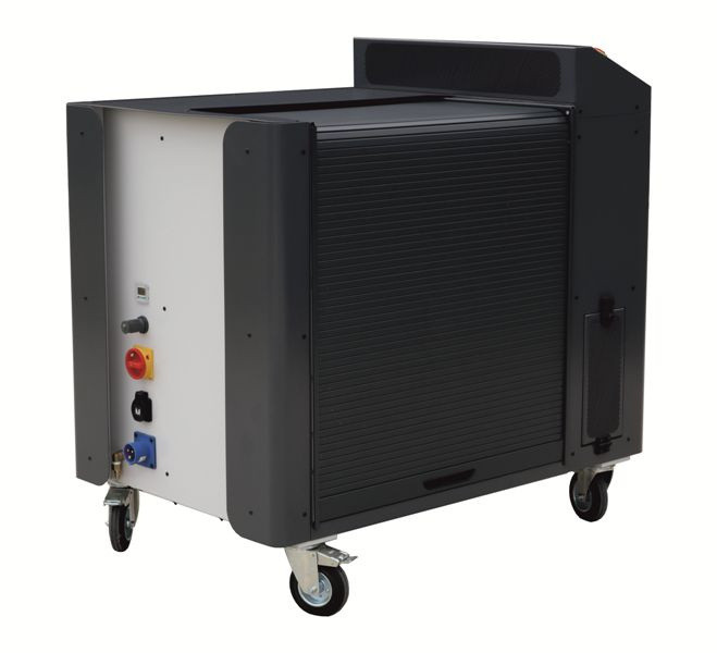 - pulzní laserová čistička PROMA LCS-100PPU je se svou hmotností 160kg a výbavou natáčecích koleček snadno mobilní