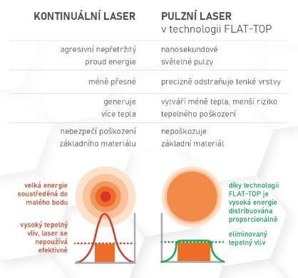 - pulzní lasery nereagují s čištěným materiálem a nemění jeho strukturu.