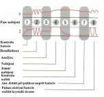 - Automatický režim nabíječka provede automatickou volbu proudu podle s kapacity baterie s průběžným monitorováním nabíjecího procesu. Nabíjecí proces je možný i úplně vybité baterie na napětí 2 V. Automatický režim nabíjení je rozložen do 8 fází - viz diagram
