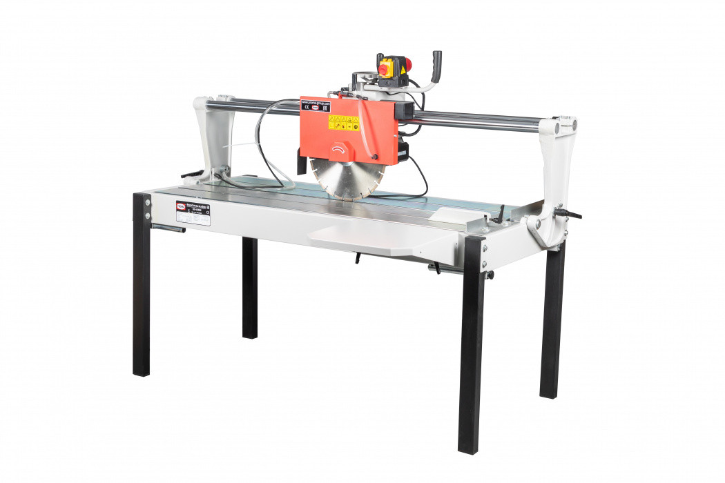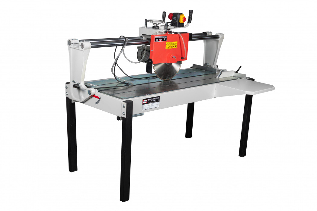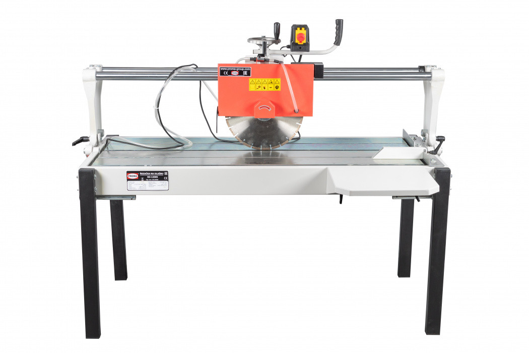 RD-1200S - Řezačka na dlažbu je určena pro dělení betonové, kamenné nebo keramické dlažby diamantovým kotoučem o průměru 350 mm s kapacitou řezu 1200 x 135 mm. Stroj je vybaven systémem výškového i úhlového nastavení kotouče a pojezdovým systémem. Jeho výhodou je vestavěné chlazení řezu a zdroj laserového paprsku ukazující směr řezu..