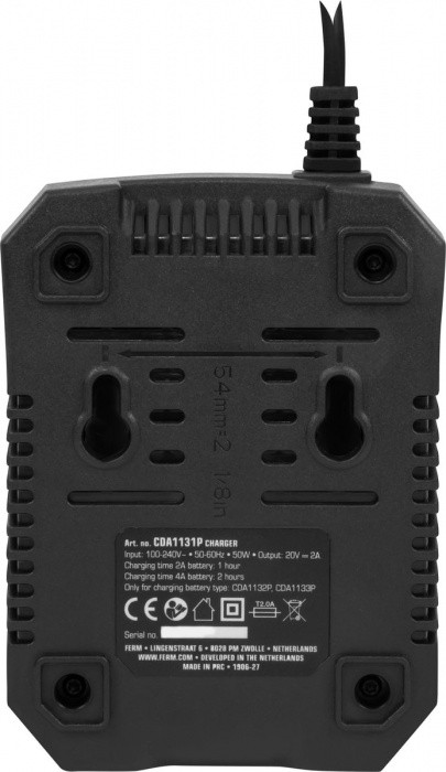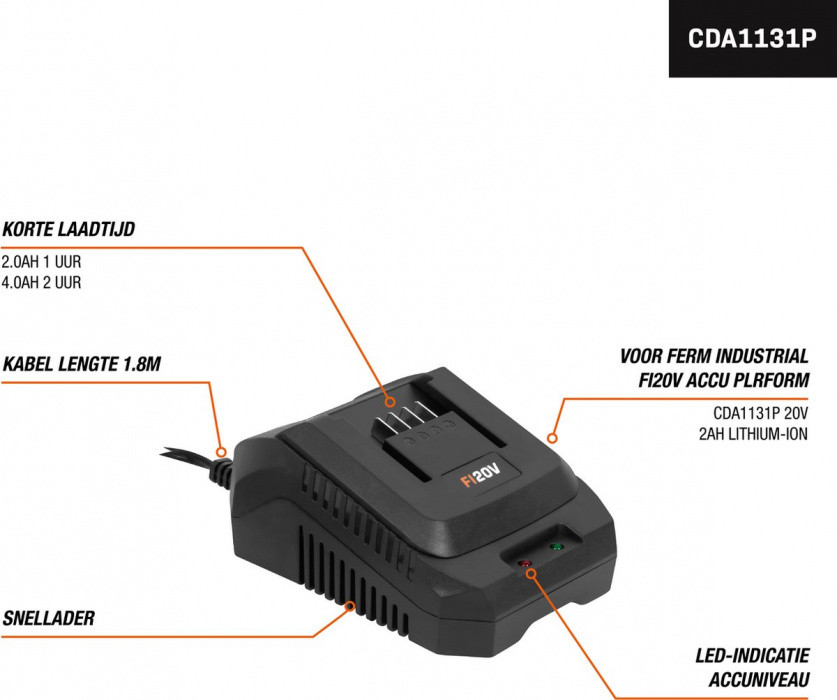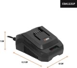 CDA1131P - Rychlonabíječka 20V e vybavena LED indikátorem provozního režimu, určeným pro nabíjení li-ion baterií pracujících v systému 20V. Elektronický systém pracující s nabitým akumulátorem zajišťuje maximální životnost akumulátorových článků.