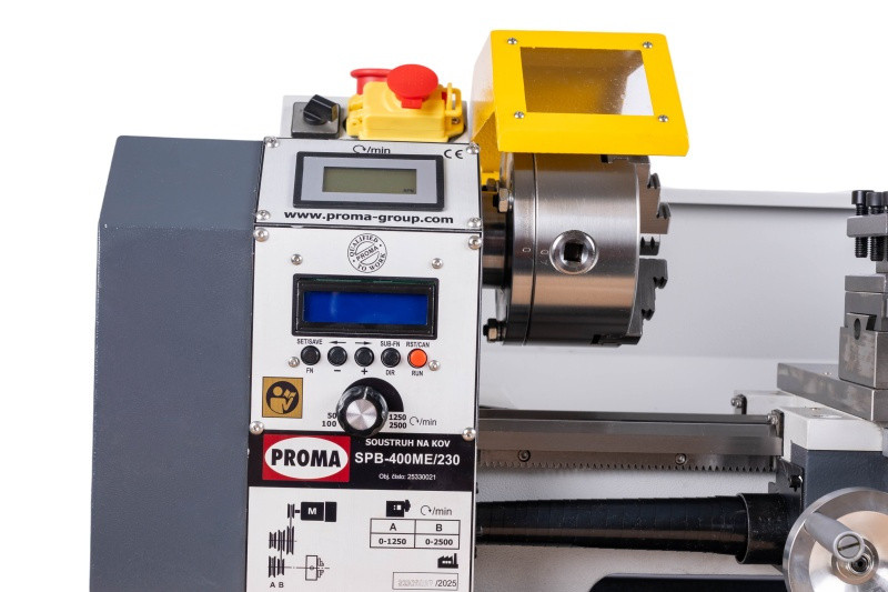 Soustruh SPB-400ME/230 je vybaven systémem číslicového řízení podélného posuvu. Pomocí tlačítkových ovladačů a digitálního panelu lze řídit rychlost podélného posuvu a parametry obrábění. Jednoduše lze zadat, nastavit i různé typy a stoupání závitů bez nutnosti výměny ozubených kol.