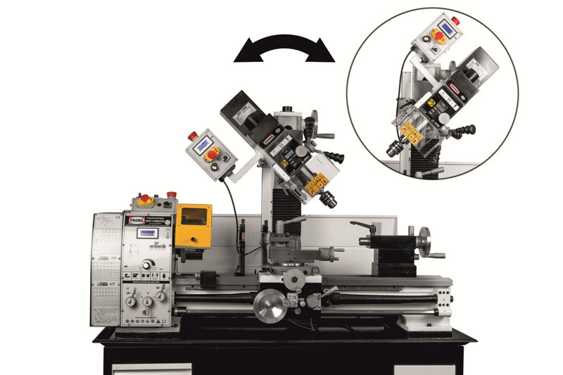 Kombinovaný soustruh PROMA SKF-750M se řadí mezi profesionální skupiny strojů, které jsou učeny pro náročné dílny, zámečnictví a školy. Díky robustnímu loži a celkové hmotnosti 532 kg nabízí excelentní přesnost. Tento typ stroje je standardně vybaven jak vodicím a tažným vřetenem pro řezání závitů, automatickým podélným a příčným posuvem, tak i natáčecí frézovací hlavou. Díky této kombinaci umožňuje kombi soustruh provádět vrtací, frézovací a soustružnické práce v malých prostorech dílen.