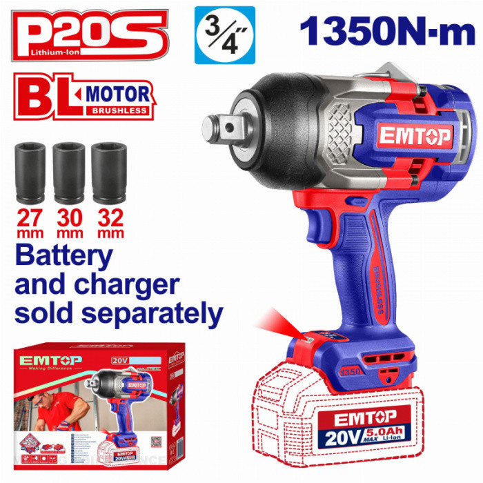Aku rázový utahovák 20V 1350Nm 3/4" solo