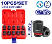 Sada 10 ks rázových nástrčných hlavic 1/2" L-40 mm