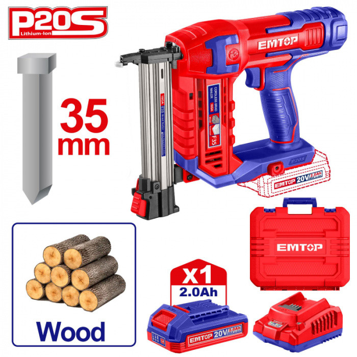 Aku hřebíkovačka 20V na hřebíky bez hlavy do dřeva L-35mm 1x2.0Ah