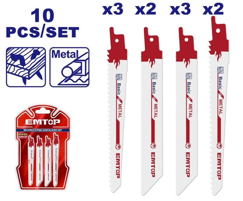 Sada 10ks pilových listů pro pilu ocasku 150mm na dřevo, kov, plast