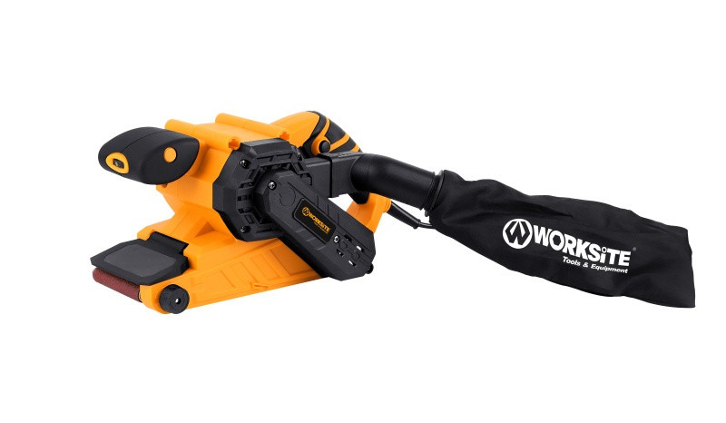 BSD174 - Pásová bruska 1010W slouží převážně k rovinnému broušení desek, trámů, latí a jiných rovných ploch. Méně často se používá k odstranění rzi na kovových plochách. Dále se používá k plošnému broušení lakovaných, barvou natíraných a tmelených povrchů.