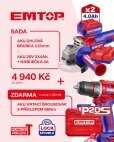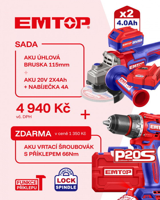 SADA Vrtací šroubovák s příklepem 66Nm a úhlová bruska 115mm AKU 20V 2x4Ah