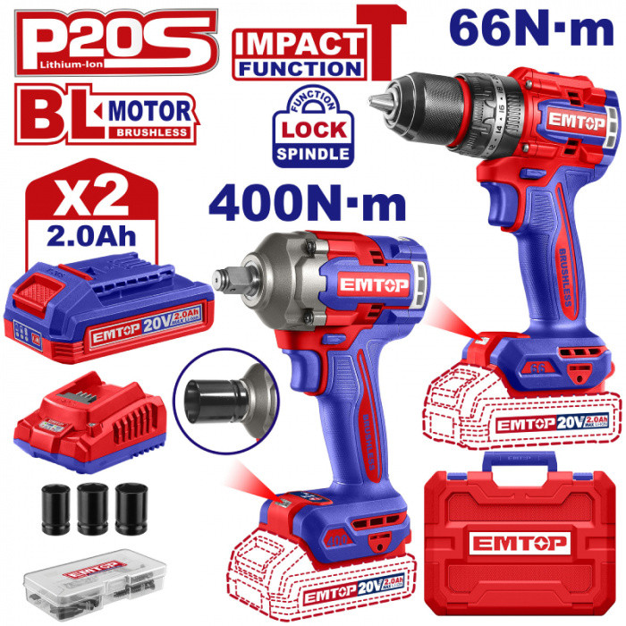 SADA Vrtací šroubovák s příklepem 66Nm a rázový utahovák 400Nm AKU 2x4Ah
