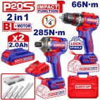 SADA Vrtací šroubovák s příklepem 66Nm a rázový utahovák 285Nm AKU 2x4Ah