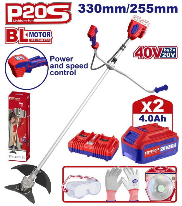 Aku strunová sekačka/křovinořez 40V 33cm 2x4.0Ah
