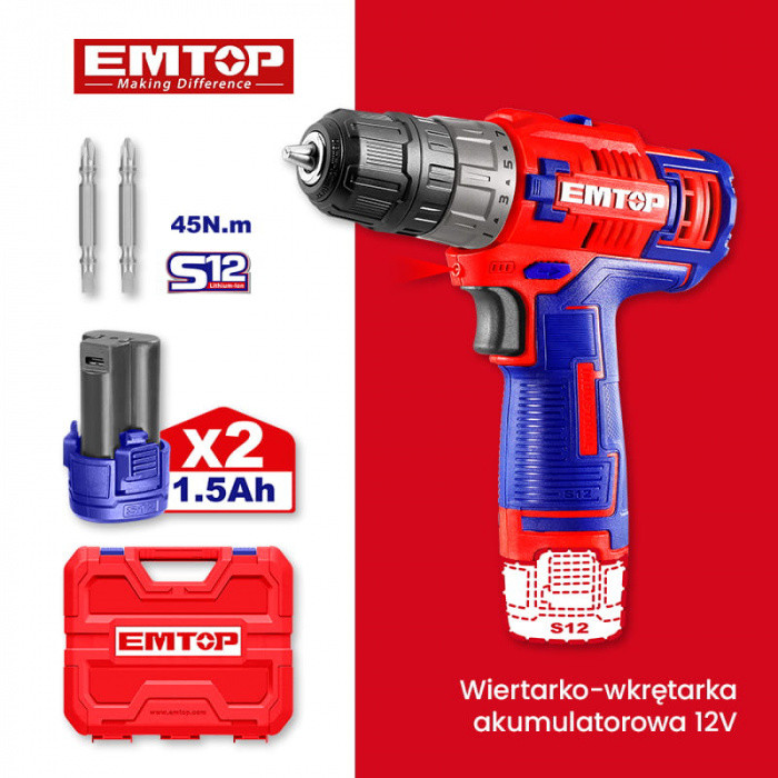 Aku vrtací šroubovák 12V 45Nm 2x1.5Ah