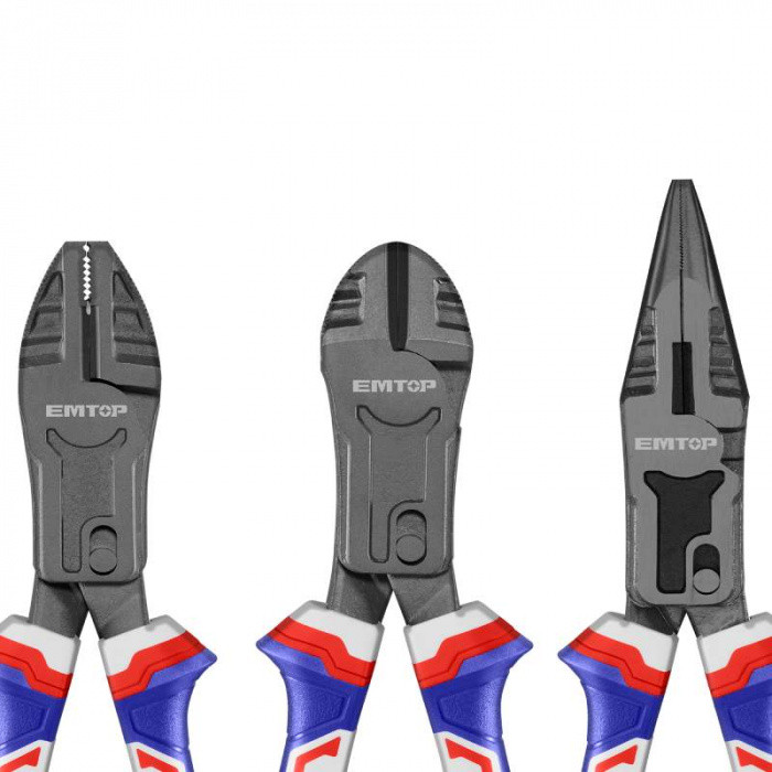 | Osah sady | 1ks kleště štípací boční silové 200 mm, 1ks kleště štípací boční silové s prodlouženou čepelí 200 mm, 1ks kleště telefoní rovné silové 215 mm |