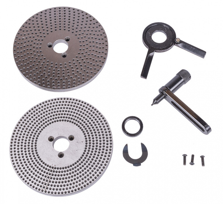 Dělící desky pro otočné stoly s průměrem uchycení 38 mm snadno udělají z Vašeho otočného stolu, nebo hlavy dělící zařízení i pro nepřímé dělení. Dělící desky pro otočné stoly PROMA OS-250, OS-160 a DHV-130 umožňují přesně dělit obvod 360° upnuté části od 2 do 66 a všechny dělení dvěma, třemi a pěti od 67 do 132.