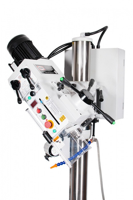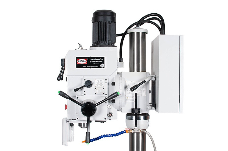 Průmyslová vrtačka PROMA S-1832FN/400 s funkcí naklápění vřeteníku je mnohostranně použitelná převodová vrtačka v těžkém a masivním provedení včetně chlazení, která nabízí profesionální výkon díky dvourychlostnímu motoru a vysokou přesnost při dostupné ceně.