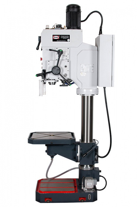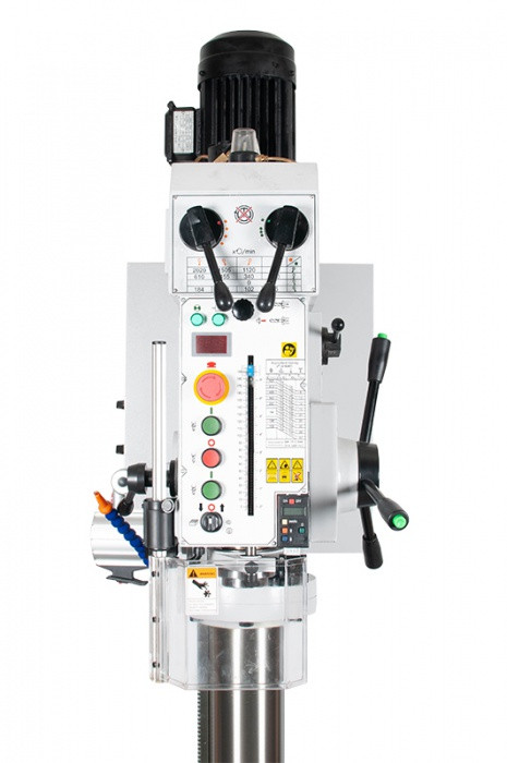 Převodová sloupová průmyslová vrtačka PROMA S-1840FP/400 je těžká vrtačka s velkým rozsahem otáček, automatickým posuvem a vrtacím stolem v sériové výbavě.