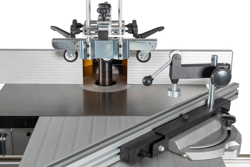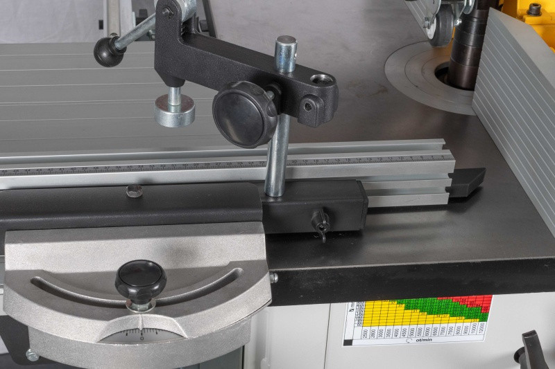 - Robustní ochranný kryt frézovacího nástroje s přesně nastavitelnými hliníkovými dorazovými lištami