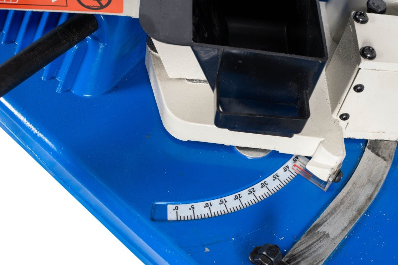 - Pila je vybavena posuvným dorazem materiálu a ramenem umožňující řezání úhlů od 0 - 45°