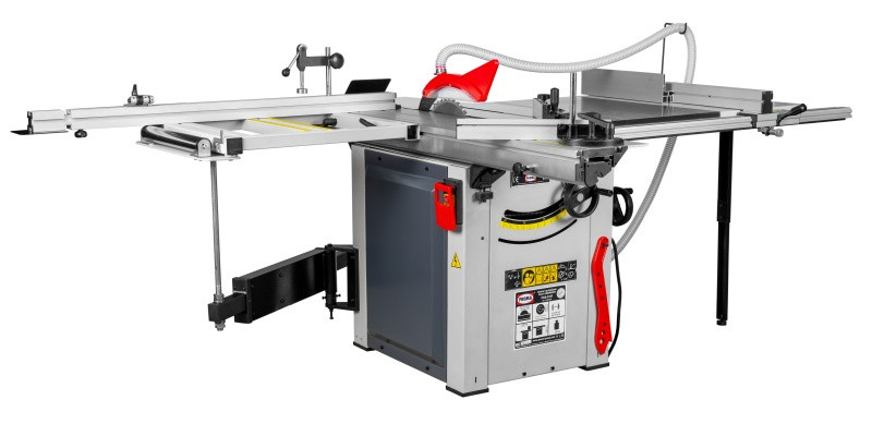 - Výhodou pily je její velký pracovní stůl s pojezdem a její robustnost