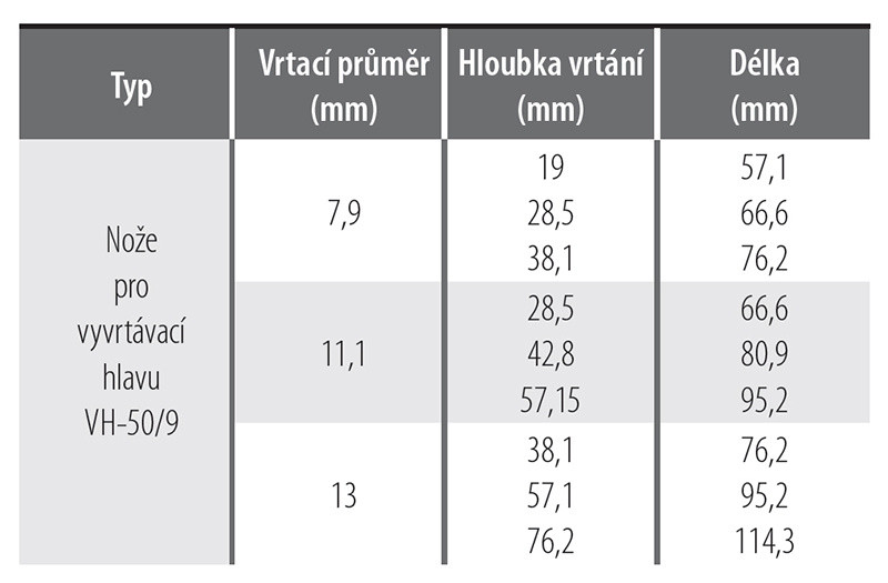 Nože pro vyvrtávací hlavu VH-50 (sada 9 ks)