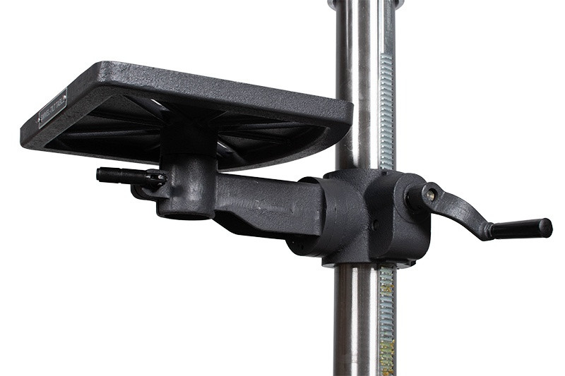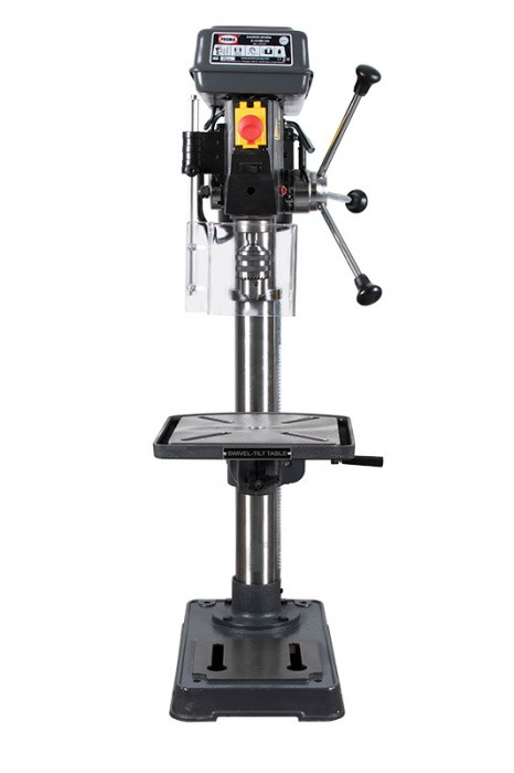 Stojanová vrtačka E-1516B/230, stroj táto třídy vyniká řadou nadstandardních funkcí a možnostmi, které uživatelům přinášejí vysokou užitnou hodnotu. Je konstruován pro vrtání, zahlubování a vystružování. Vhodné využití najde v zámečnických dílnách, opravárenských podnicích, truhlárnách, skladech ale i u domácích kutilů. Vřeteno je uloženo v kuličkových ložiscích a osazena kuželem Mk II, do kterého je možné vložit vrtací sklíčidlo nebo přímo nástroj. Pracovní stůl lze natáčet až o 360° pomocí otočného čepu a naklápět do úhlu + / - 45° od základní roviny, což umožňuje vrtání otvorů pod různými úhly.