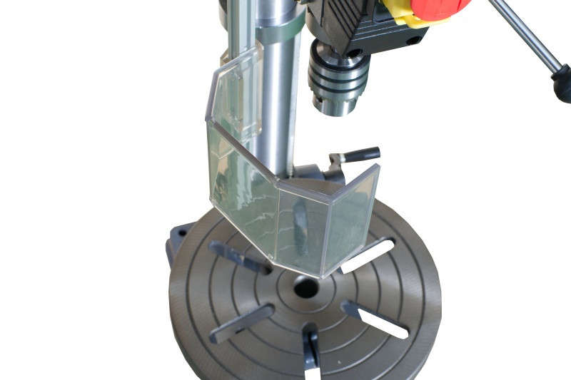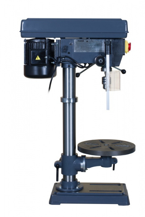 - Vrtací stůl naklápěcí (± 45°), výškově stavitelný pomocí hřebenové tyče