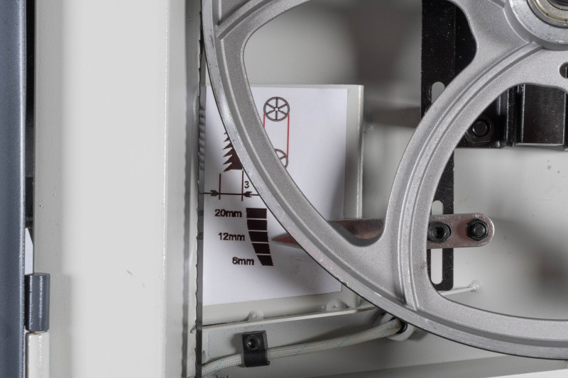 - Rychlá výměna pilového pásu za pomocí excentru horního kola