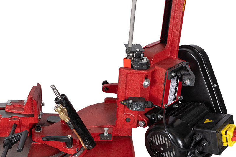- Automatický koncový vypínač zastavuje pilový pás po ukončení řezu