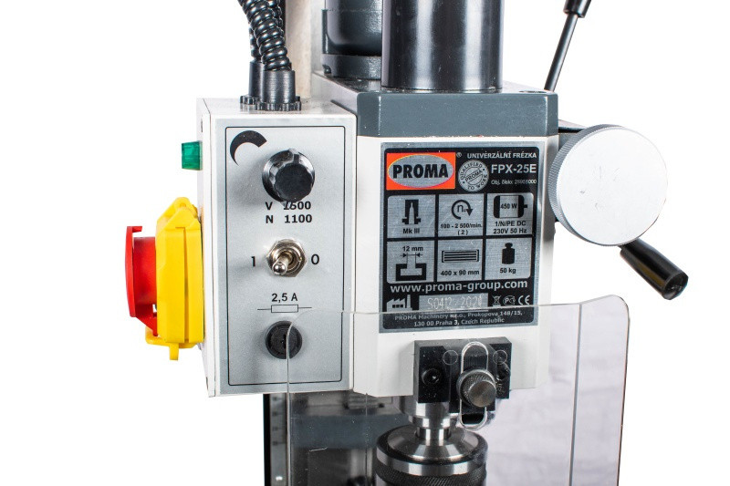 Frézka PROMA FPX-25E se řadí do kategorie menších frézek v naší nabídce, určených pro náročné modeláře, kutily a menší dílny. Stroj je vybaven výkonným motorem, plynulou regulací otáček a dvoustupňovou převodovkou.