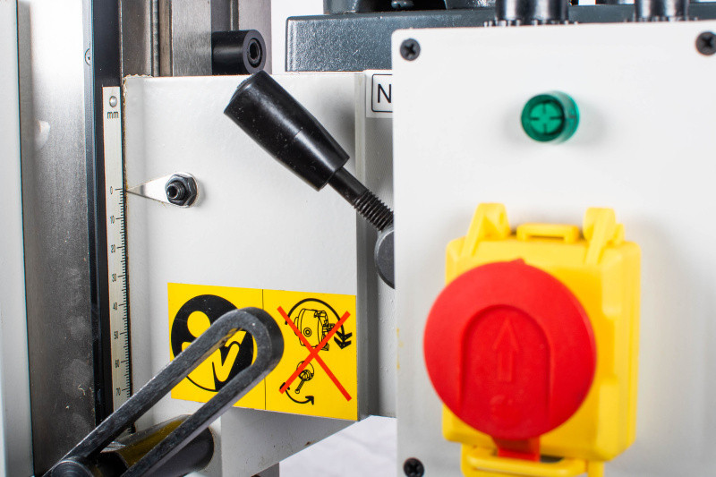 Ochranné prvky stroje odpovídají platným ISO normám, zahrnují tlačítko pro nouzové zastavení stroje, ochranný kryt vřetene a bezpečnostní vypínače pod ochrannými kryty.